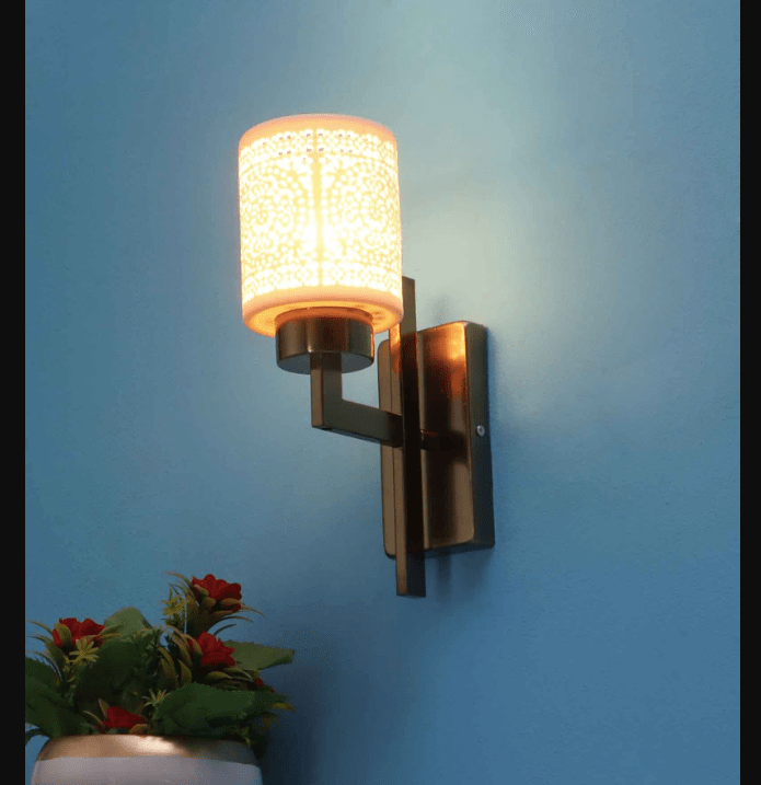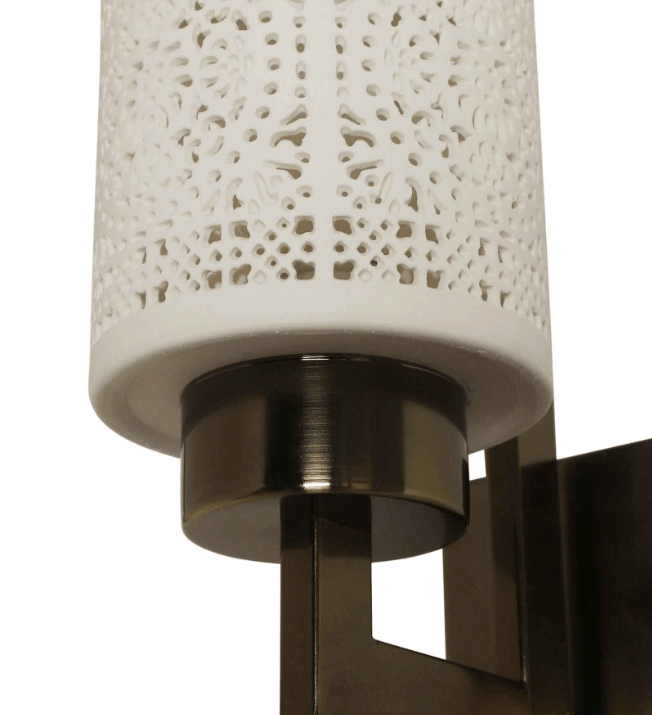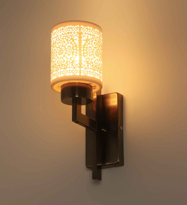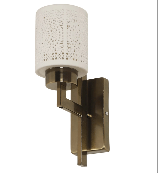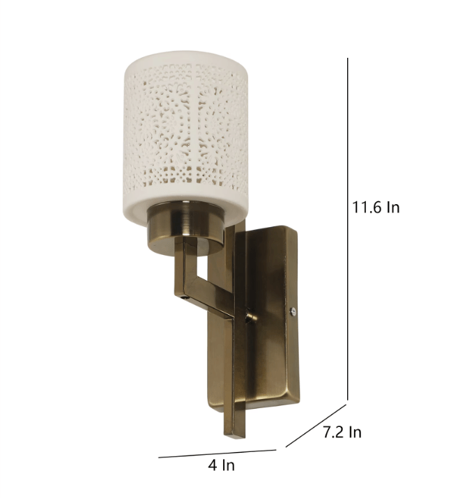 Antique brass finish double wall light having cylindrical White Jali Style Ceramic Glass with Frame made of mild steel. It is maintenance free., It is easy to remove glass and wash them. Comes with an E27 holder, only the change of lamp is required, which is available locally everywhere. LAMP NOT INCLUDED.Application includes both residential and commercial premises wherever it matches with your interiors.